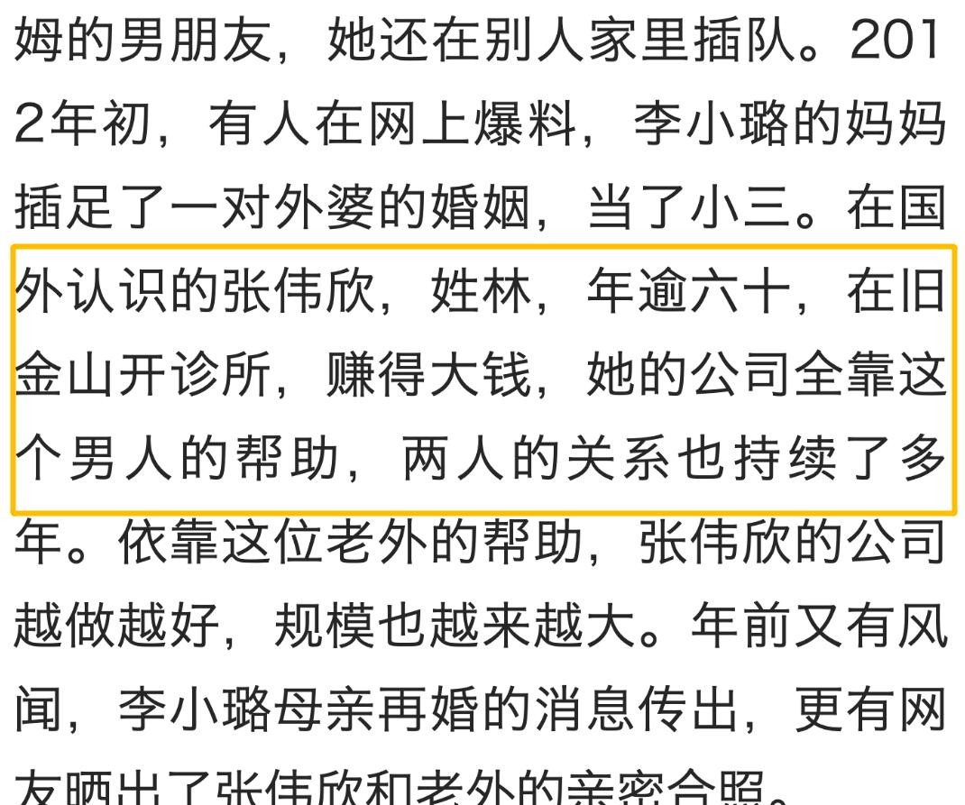 甚至可以说,相比李小璐而言,作为妈妈的张伟欣,她的人生和感情绯闻,要比女儿李小璐还精彩!