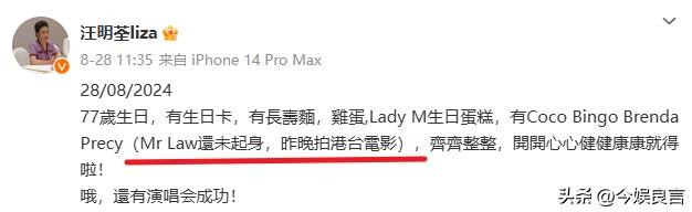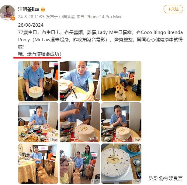 前两天,阿姐汪明荃在社交媒体上发布一条给自己庆生的视频。