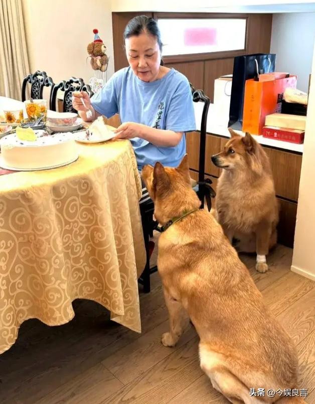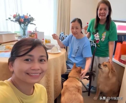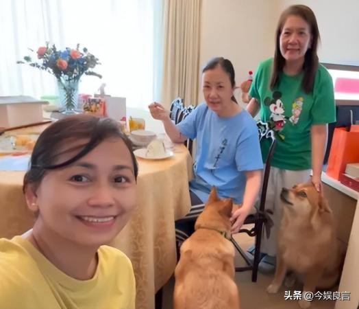 汪明荃的身边只有两个女佣和两只狗为她庆生。