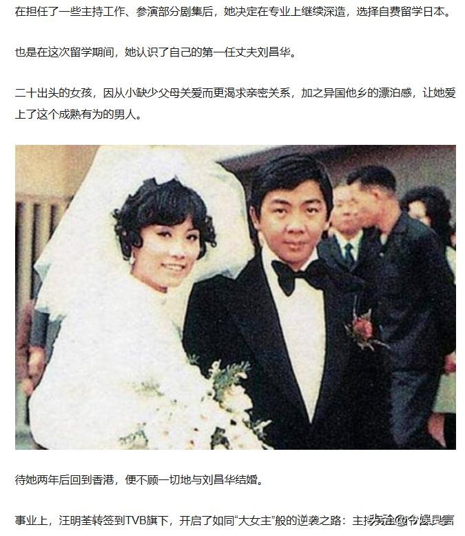 回国后,汪明荃火速和刘昌华结婚了。