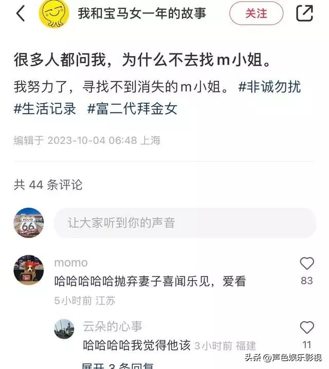 然而,她好不容易塑造的这份平静,被一篇《我和宝马女一年的故事》的文章再次打破。