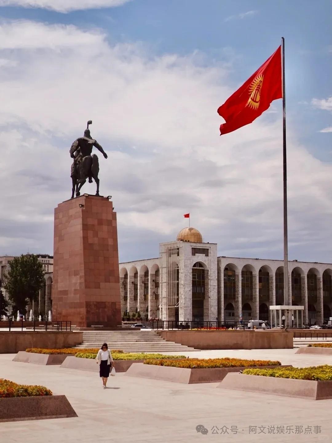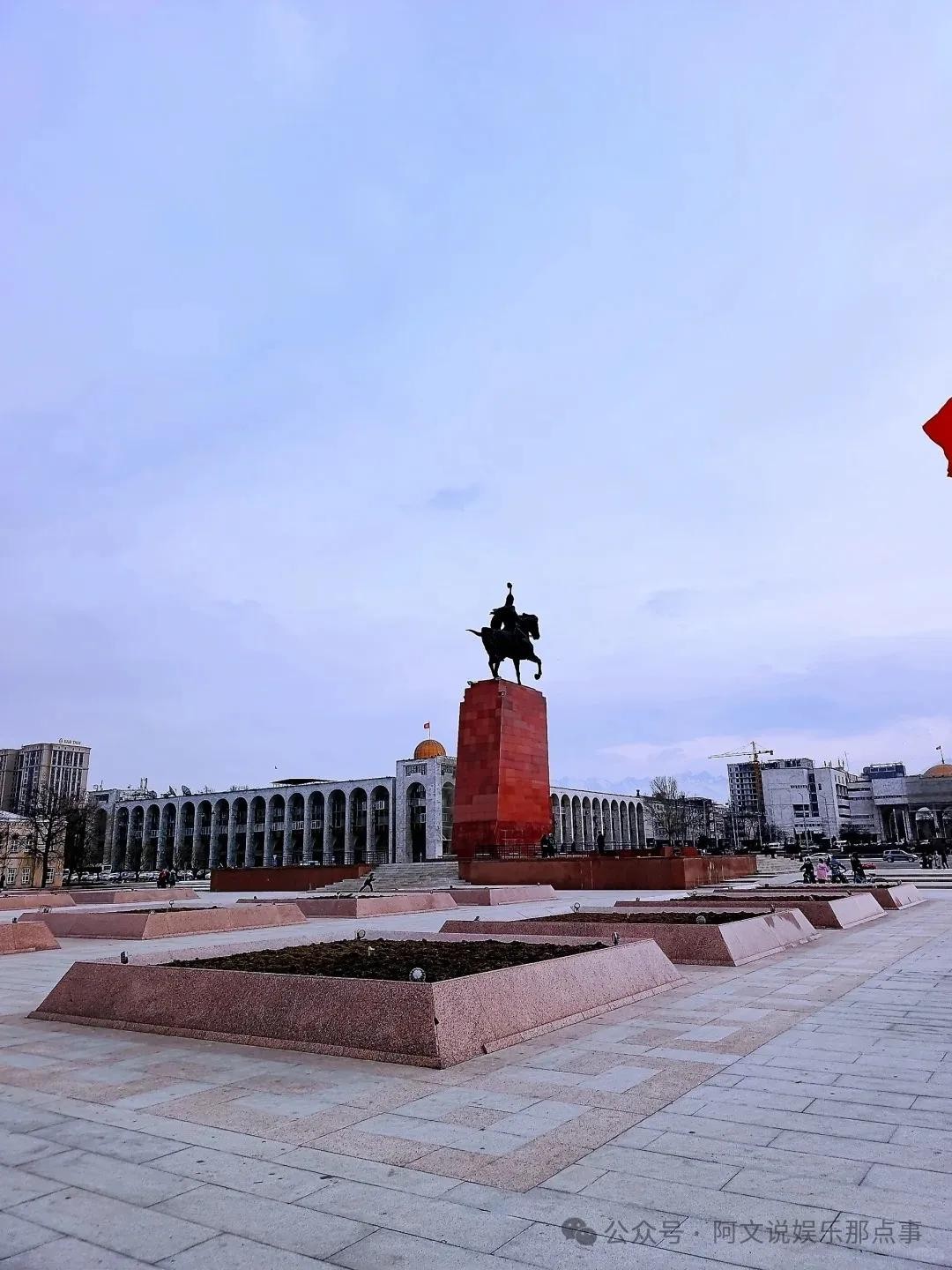 首都比什凯克,一座被雪山环绕的宜居城市,随心所欲的城市漫步更适合中国宝宝体质。先去吉尔吉斯斯坦的中心广场阿拉套广场,这里是吉尔吉斯斯坦的政治中心,民族英雄马纳斯的雕像屹立于此,仿佛守护着这座城市。