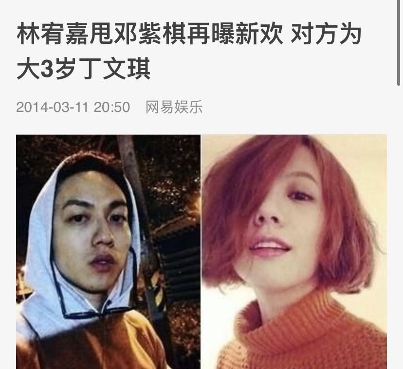 见父母见得如此不愉快,邓紫棋虽然失落,却并不知道自己已经“被分手”。直到2014年,林宥嘉被曝出跟比自己大三岁的丁文琪谈着恋爱,邓紫棋才知道,人家闹失踪是在表达跟自己分手的意思呢!他已经在外面风流快活去了!