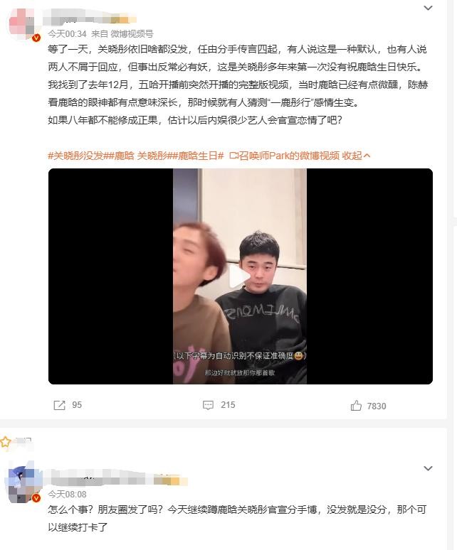 鹿晗2017年的官宣微博仍钉在热搜榜,评论区挤满“初代情侣”的回忆杀:“八年了,你们给了我们勇敢的官宣。”“现在删博算什么?当年锁死微博的勇气呢?”
