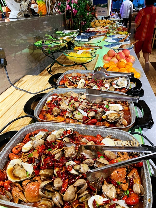 鲍鱼、海参、龙虾、扇贝、生蚝、深海鱼应有尽有。洗完澡之后的美餐一顿的感觉可真是太棒了。虽然是一家洗浴会馆,但是这里的美食真的是非常的美味。洗好之后好好吃一顿大餐,元起瞬间回满。