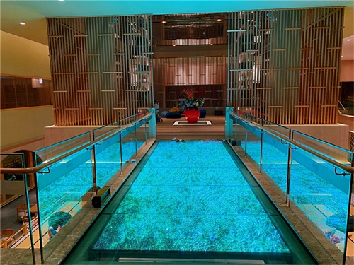 做为长春老牌的洗浴会馆。钓鱼岛这个名字在长春人心里可谓是耳熟能详了。走进2楼休息大厅需要穿过led栈道,仿佛脚踏在星河之中。