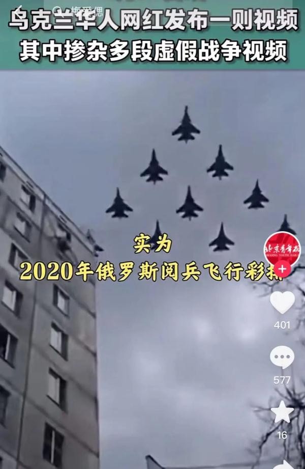 原来他在网上发布的战机从乌克兰上空飞过的视频是俄罗斯的阅兵飞行视频;