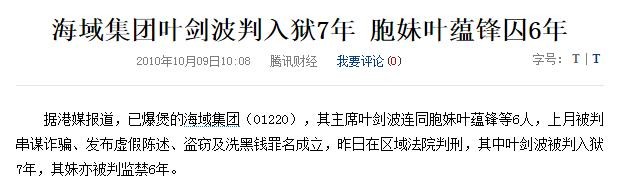 只可惜好景不长,2006年,叶剑波的公司被查出账目问题,叶剑波先是失踪了很久,后来就被逮捕入狱了,这段婚姻维持了九年的婚姻也宣告结束。