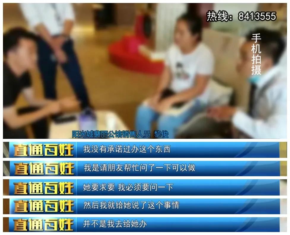 这名销售人员告诉记者,虽然他确实给李女士咨询过办理“假离婚”证的事,但是他并没有承诺为李女士办理。对于办理“假离婚”一事,双方各执一词,而李女士提出需要退定金的诉求,阳光城裴丽公馆营销负责人陈金谷也表示,会向上级反映此事。