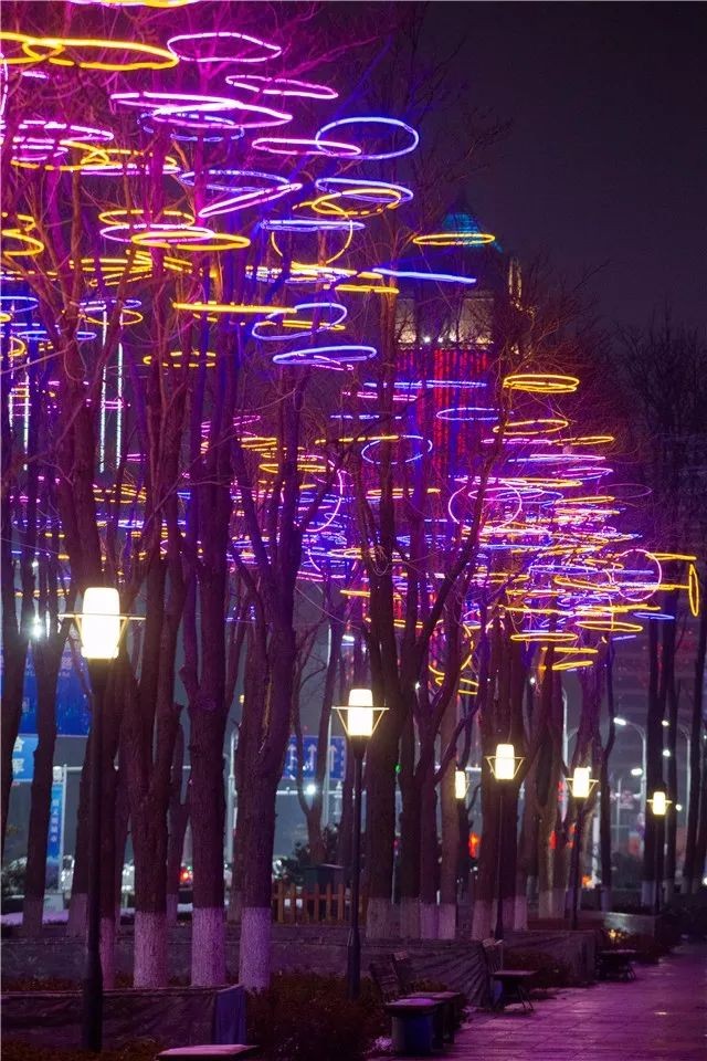 据了解,为了营造春节期间的城市夜景氛围,西海岸新区在多条道路上加大了夜景亮化设施的投入,不同花样的灯光将夜晚的街头变得梦幻多彩,吸引了许多市民漫步其间欣赏拍照。