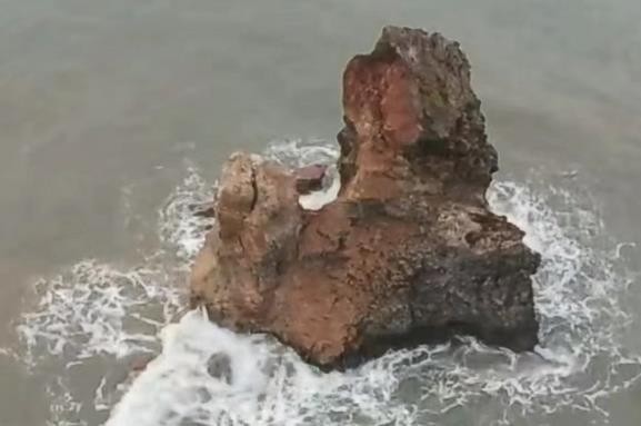 青岛网红景点“石老人”海蚀柱部分坍塌 当地:风化和海水侵蚀造成 正论证修复方案