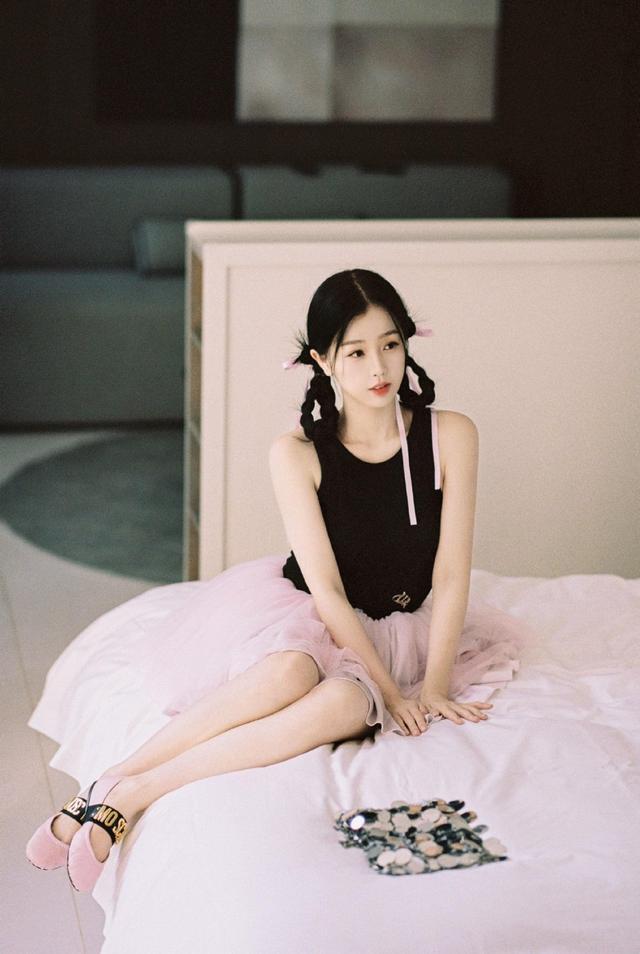 虞书欣粉色纱裙造型写真曝光 双手托腮甜笑轻柔灵动