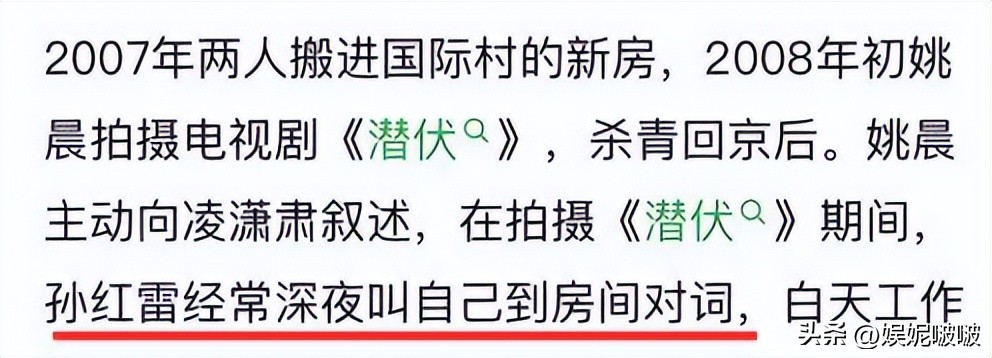 有爆料说,姚晨在08年出演电视剧《潜伏》结束回到京之后,姚晨主动把自己对孙红雷的感情告诉了凌潇肃。