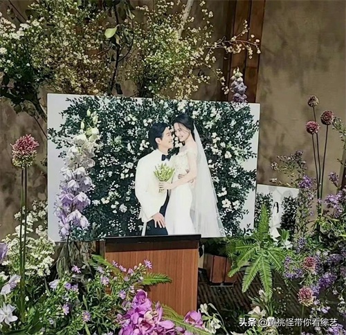 下面就让小编黄桃怪来带大家看看昨晚婚礼现场的照片吧,友情提示前方糖分超高,首先是两人拍摄的婚纱照,现场的布置也超级有氛围感