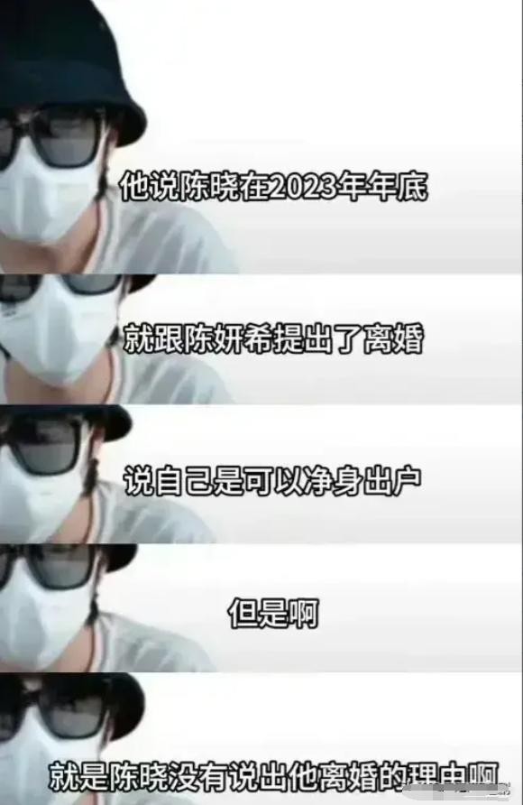 然而,陈晓并没有说明离婚的具体原因,之后便彻底断绝了与陈妍希的联系。