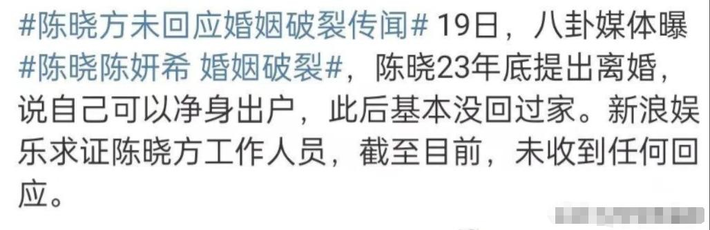 娱乐圈向来不缺少话题,最近一则关于陈晓与陈妍希离婚的消息,再次引发了热议。