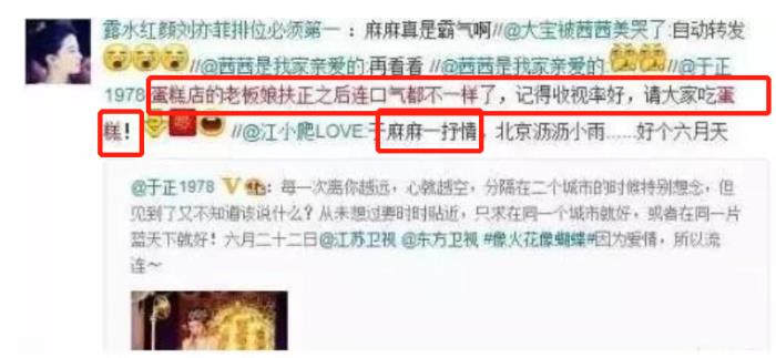 彼时,江一燕在网上把于正称为“于麻麻”。大家都知道他十分讨厌这个称呼,于是他毫不客气地怼了回去:“蛋糕店的老板娘扶正之后连口气都不一样了。记得收视率好,请大家吃蛋糕”。