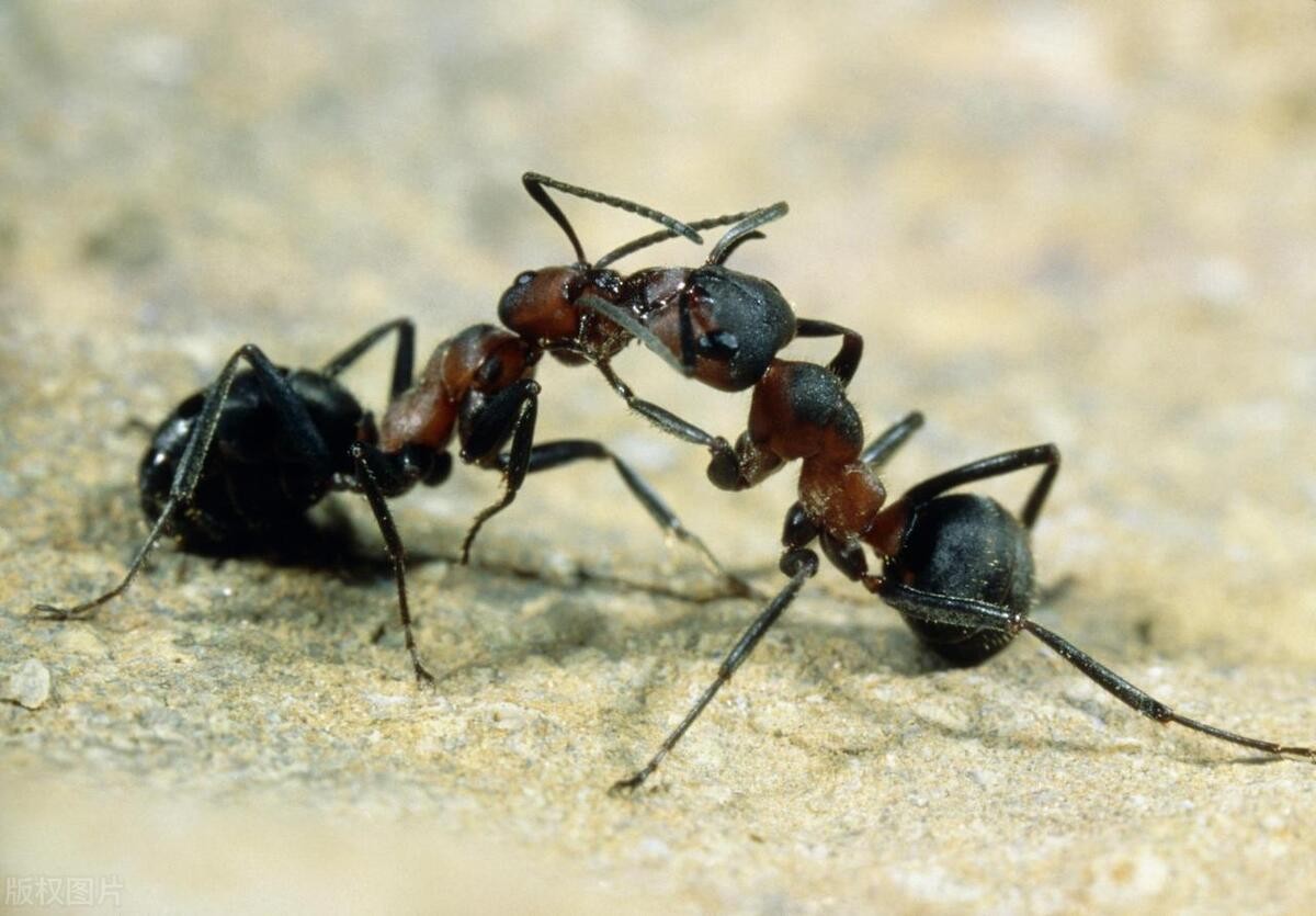 而兵蚁则尽职尽责地保卫蚁后和巢穴的安全,遇到险情首先以身御敌。当然,蚁后所分泌的化学信息素还有吸引雄蚁前来交配的作用。值得一提的是,尽管蚁后可以悠哉悠哉活到30岁的年纪。为蚁后诞下后代贡献精力的雄蚁可谓是“用生命来繁殖”,寿命仅有26天至67天。