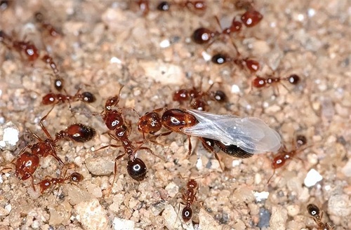 成千上万的雌雄蚂蚁交汇在林间亦或者草原上,经由短暂相亲之后,便结合在一起,完成繁衍大计。交配结束之后,雌性蚂蚁就会褪去翅膀,“遁入”土中,寻求产卵的安全场所。