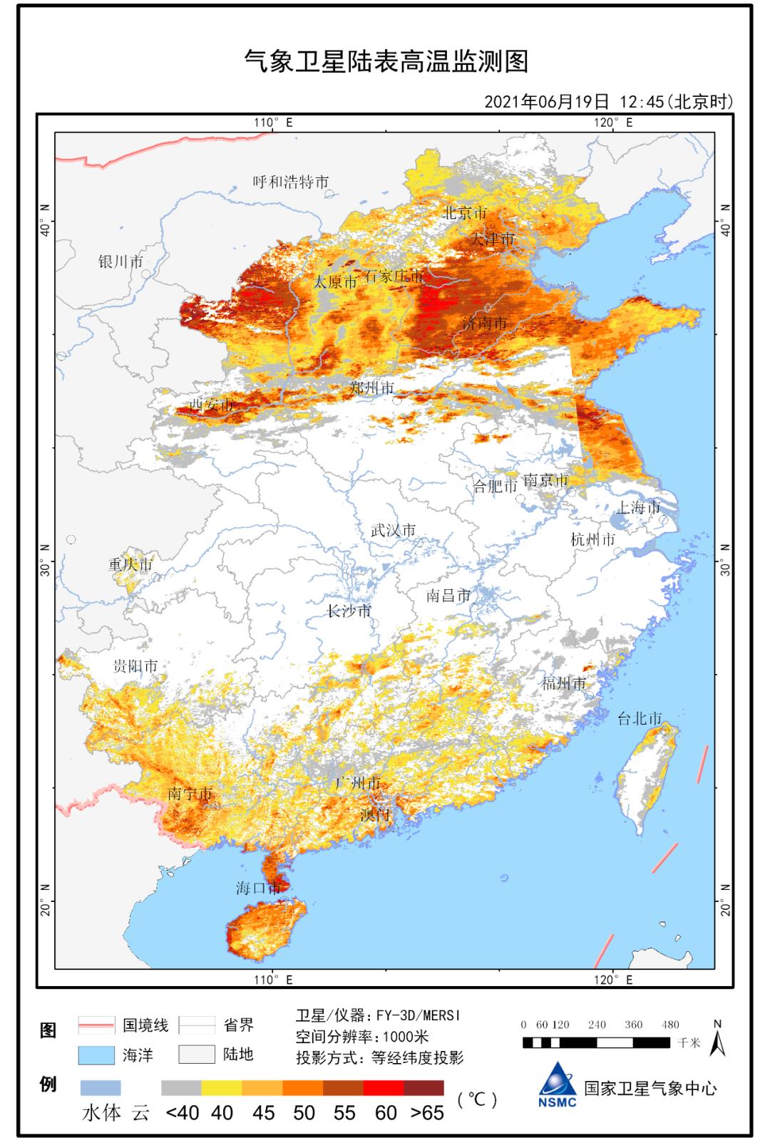 风云三号D星监测的2021年6月19日地表高温过程 图/国家卫星气象中心