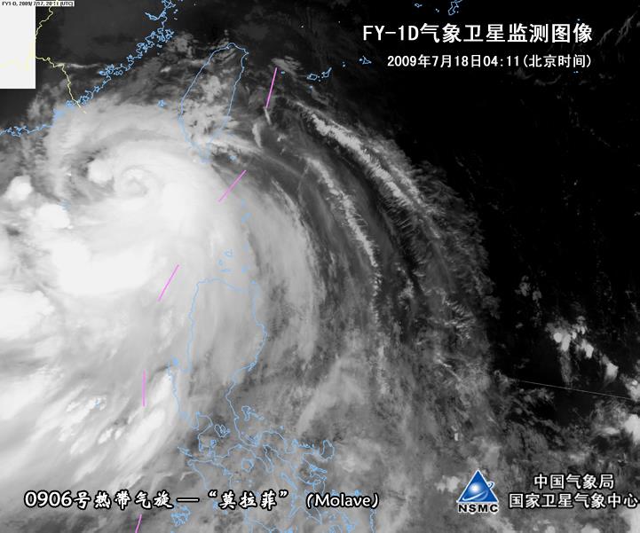 2009年7月18日,第6号台风“莫拉菲”即将登陆深圳南澳附近一带,珠江口各处暴风席卷 图/国家卫星气象中心