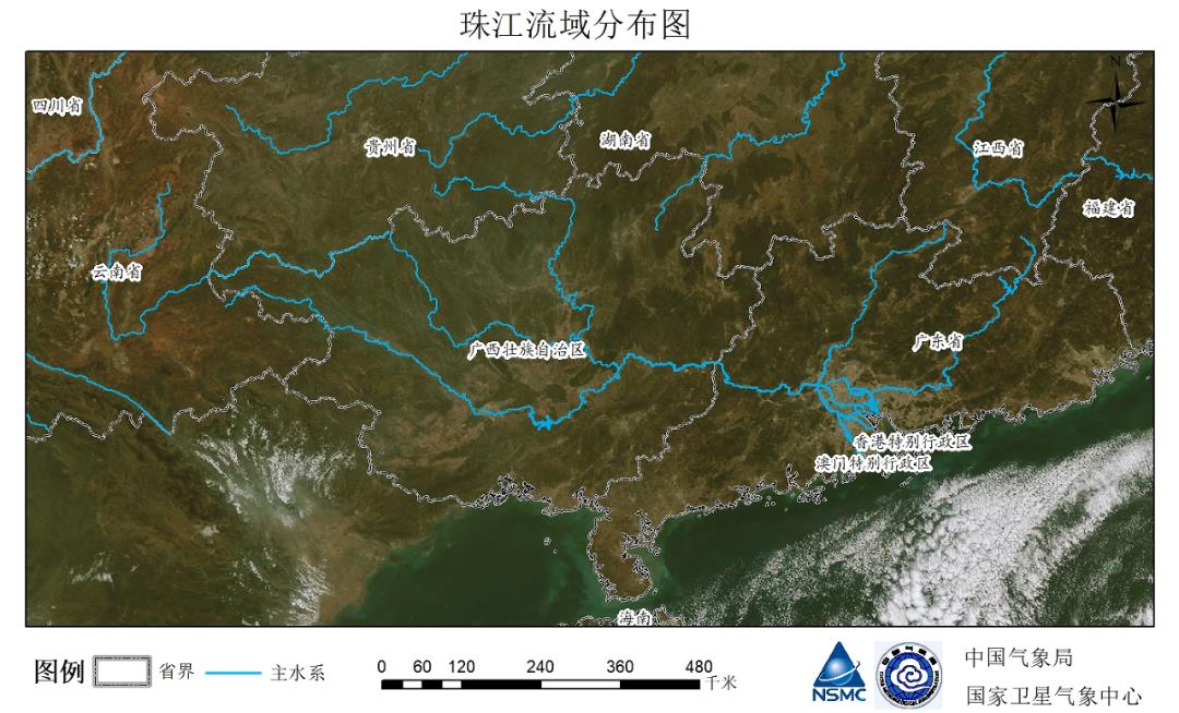 珠江流域的主水系分布 制图/陈洁 图/国家卫星气象中心