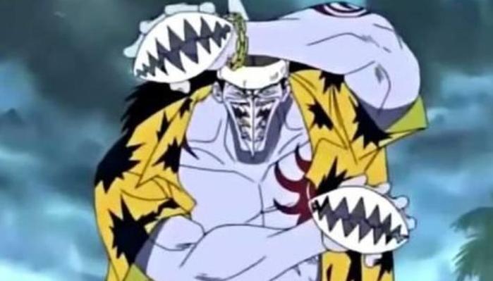 第三名,疑似鲨鱼鱼人,白胡子旗下的八队队长,白胡子的队长个个都强的像怪物,应该具备了海军中将中比较厉害的一种实力,所以暂时排在第三位!