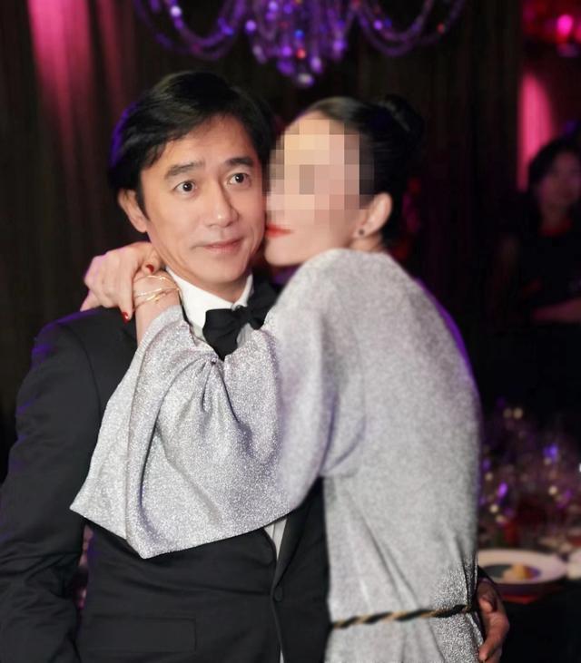 梁朝伟现身刘嘉玲生日宴,被美女搂着贴脸合影,表情既痛苦又尴尬