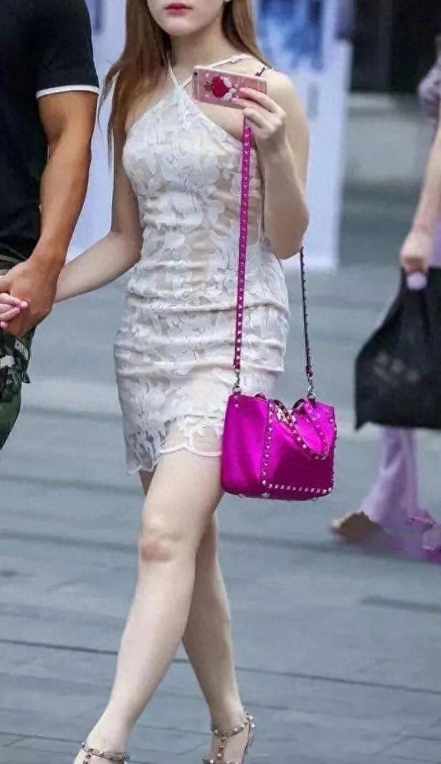 街拍:白色蕾丝透视裙丰腴美女 她的肤色和男友形成鲜明对比!
