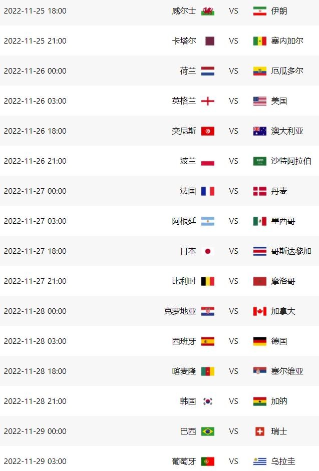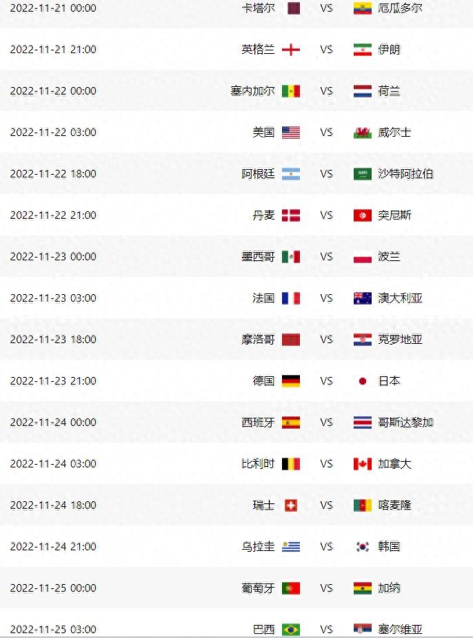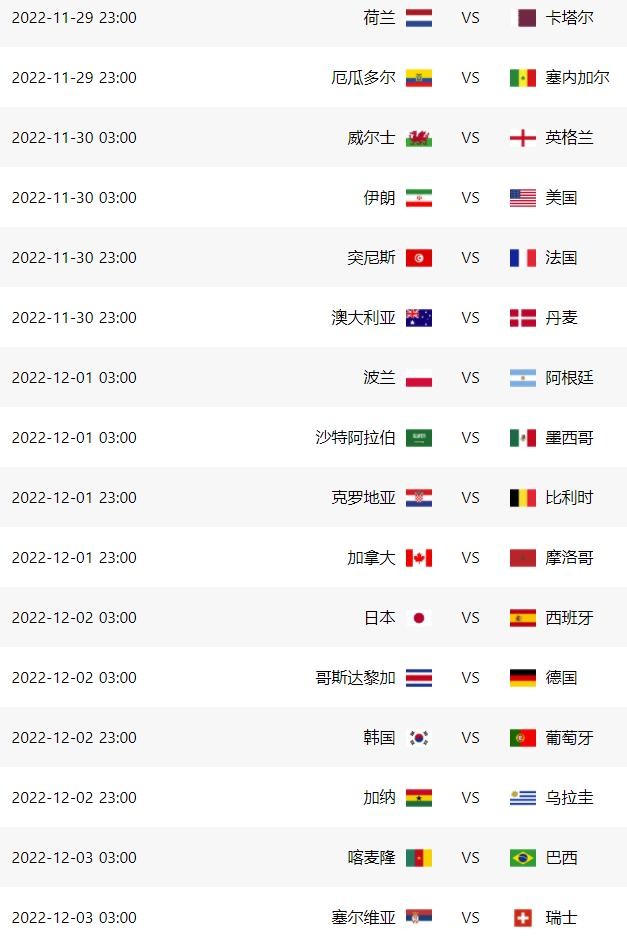 卡塔尔世界杯小组赛完全赛程对阵时间表