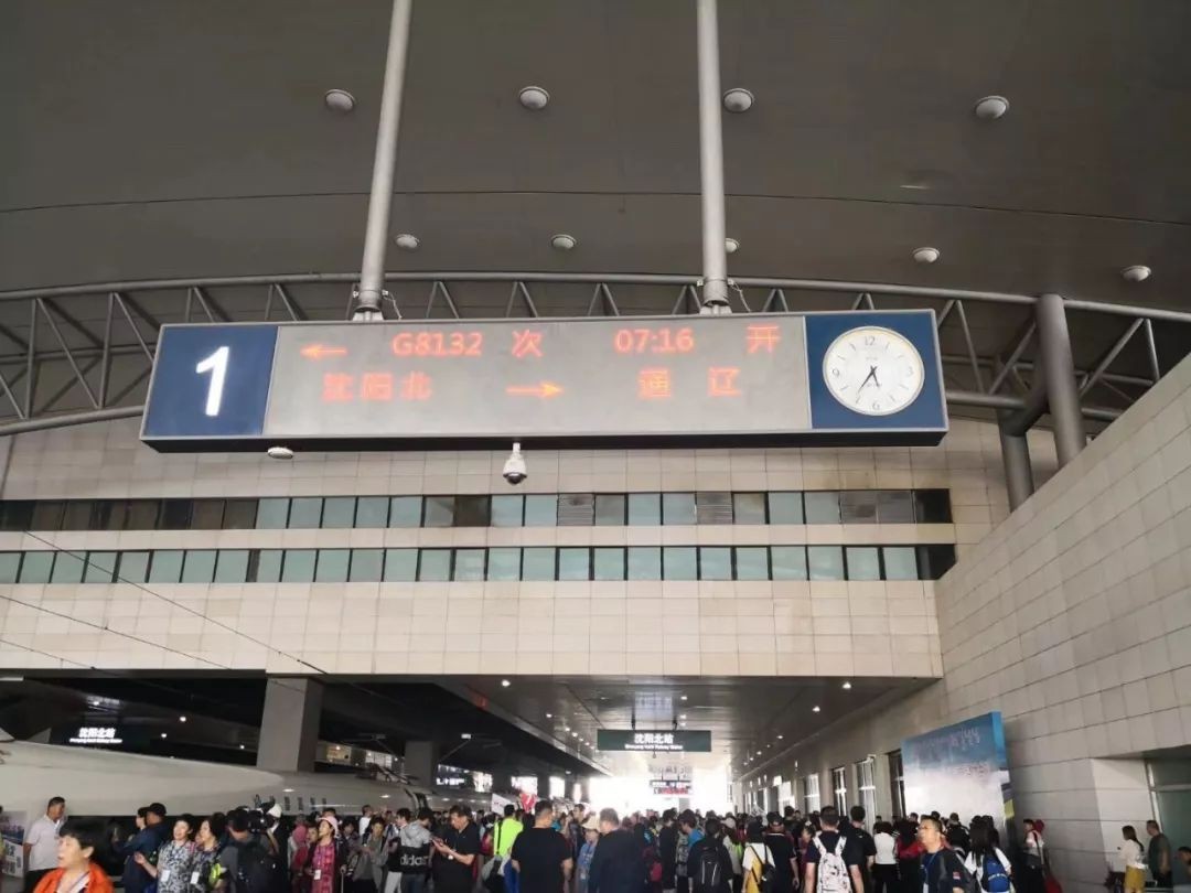 6月22日7时16分,沈阳至通辽的G8132次高铁旅游列车从沈阳北站正式发车,经新通高铁前往内蒙古通辽。这趟专列也被称作“沈铁国旅·沈阳晚报号”,这也是新通高铁开通以来首次开进内蒙古草原高铁旅游列车。