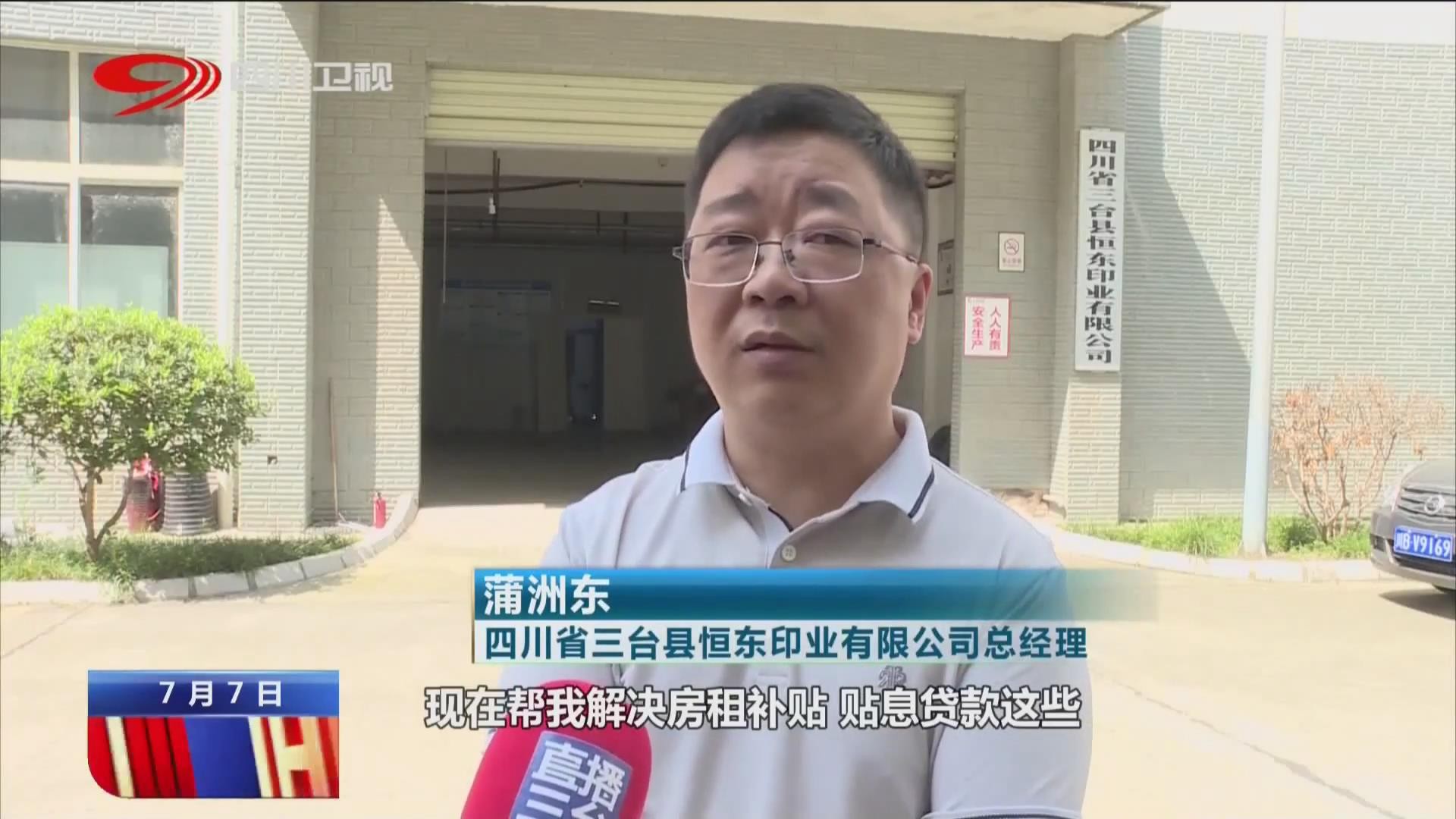 四川省三台县恒东印业有限公司总经理 蒲洲东:我打了那个热线电话过后,(给我)讲了纾困的政策,现在帮我解决房租补贴,贴息贷款这些