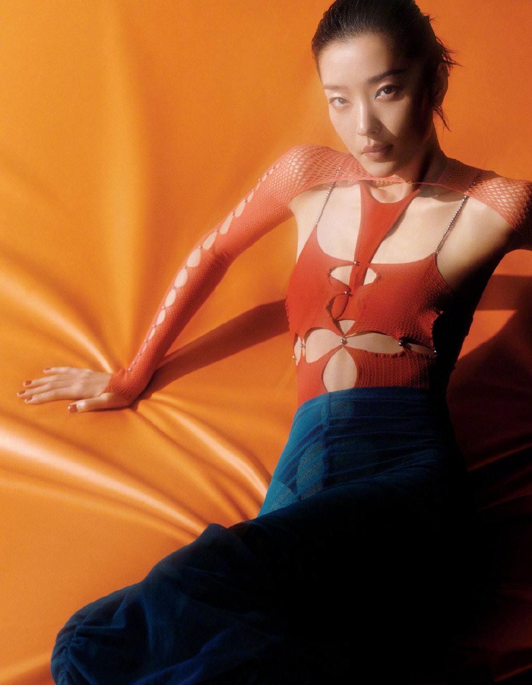 网状设计的上衣很有辨识度,形成渔网一样的独特造型,既可以用服饰表达艺术,也可以用服饰传达情绪,人和衣服形成了精妙的互动,互相成就对方。
