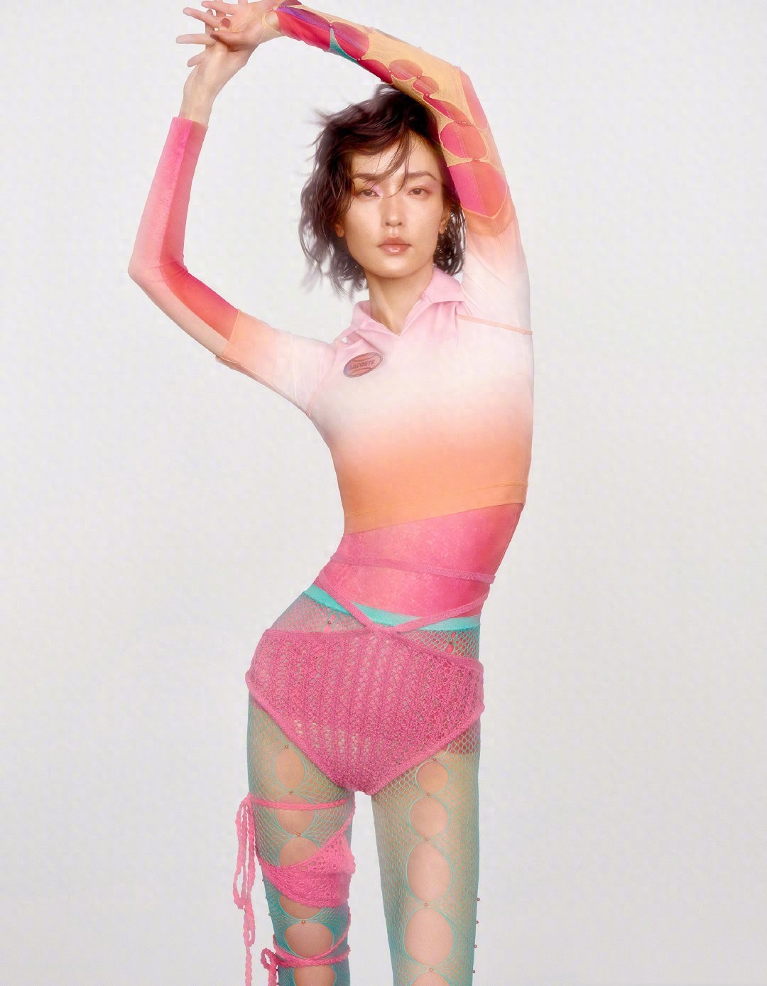 大胆前卫!超模杜鹃拍时尚写真搭配,彩色网袜故意搞破洞,超惹眼