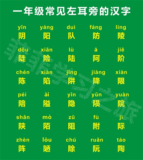 左耳旁有:阴、阳、队、防、陵、陡、险、陆、阿、阶、陈、陷、阱、降、限、陪、隘、隐、陨、院、陕、陌、阻、附、际、阵、陋、除、阮、陶等;