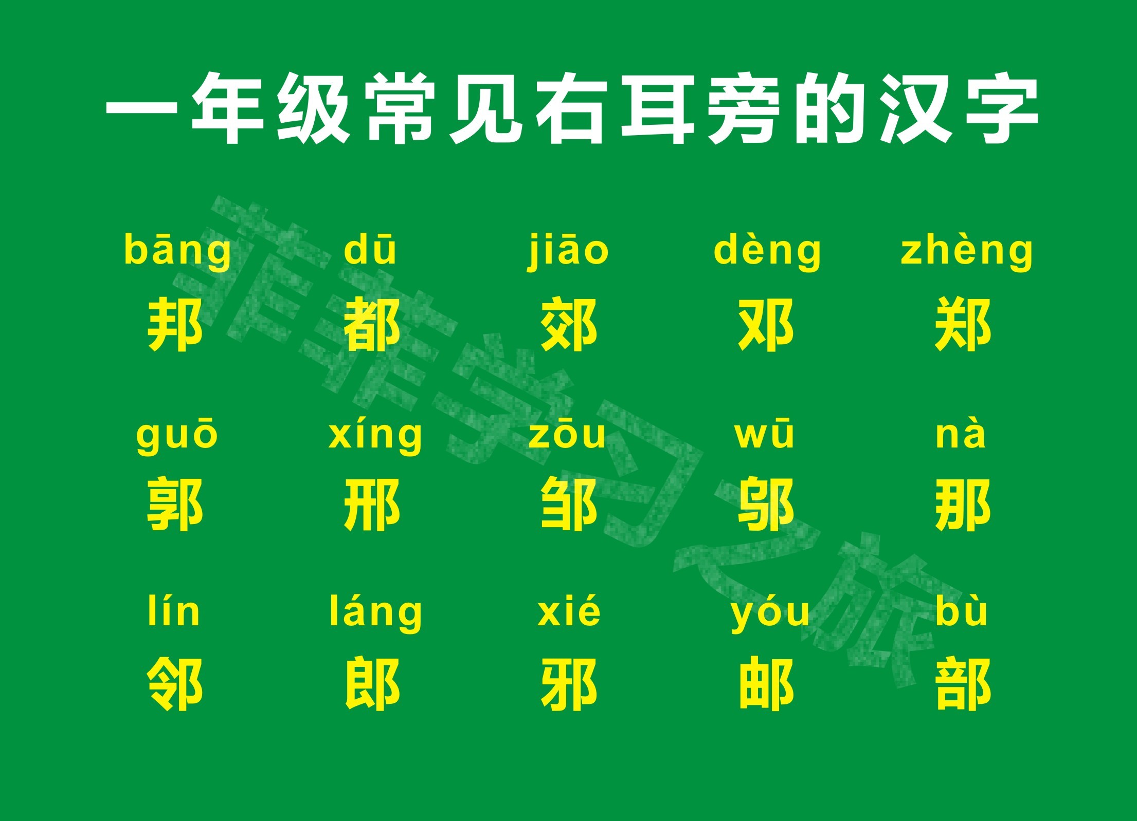 右耳旁有:邦、都、郊、邓、郑、郭、邢、邹、邬、那、邻、郎、邪、邮、部等。