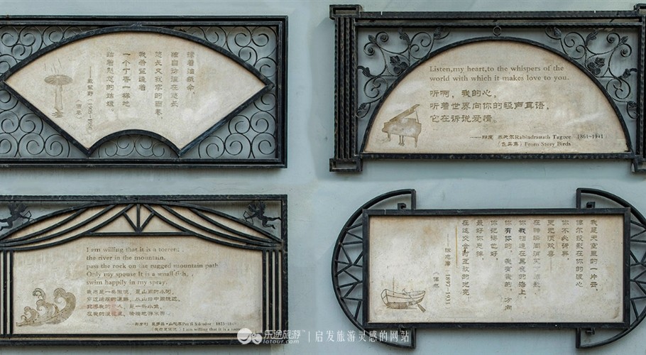 甜爱路不仅是名字惹人遐想,整条路都围绕着浪漫的主题精心打造。道路东侧的围墙上,每隔几步就有一段中外歌颂爱情的诗篇。这段围墙,被称为“爱情墙”,当情侣漫步于此,偶尔看看墙上的诗篇,增添几分情趣。