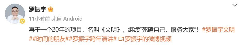 在自己的微博中,罗振宇作出同样的宣布:再干一个20年的项目,名叫《文明》,继续“死磕自己,服务大家”!