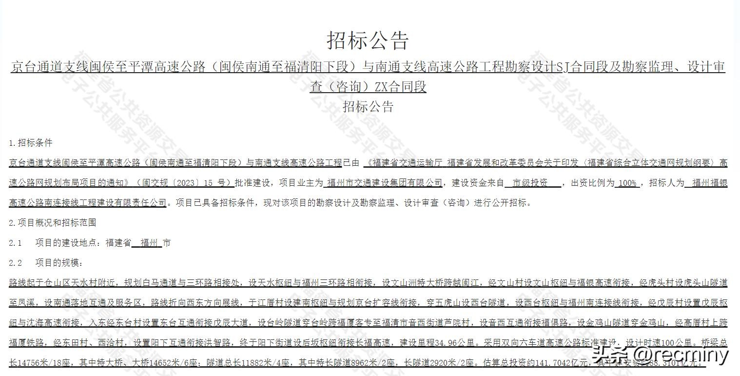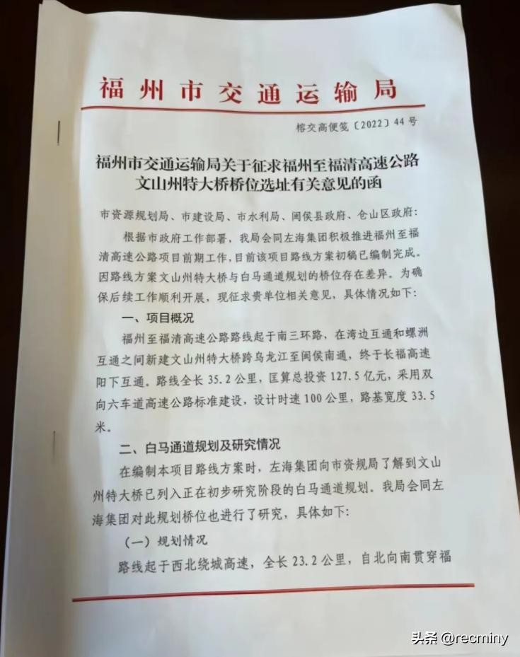 最新消息,福州至福清高速公路及文山洲大桥连接线工程昨日正式启动招标工程。