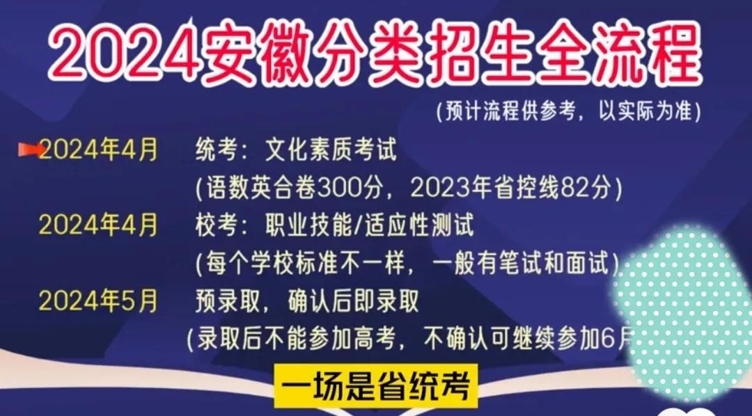马上9月份开学了,准备参加2024年分类招生的小伙伴看好了,2024年安徽省分类招生时间节点。具体请关注安徽省招生考试院官网。