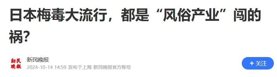 2024-10-14 14:59 新民晚报 日本梅毒大流行,都是“风俗产业”闯的祸?