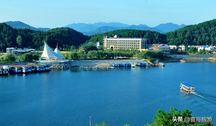 燕塞湖景区,位于山海关城西北3.5公里处。燕塞湖亦称石河水库,是山海关这座军事要塞的一道天堑,隋、唐、辽、金时期的民族军事冲突多发生在这里。而今燕塞湖,宛如画境,沿岸悬崖峭壁千姿百态、惟妙惟肖,自然景观星罗棋布,苍松翠柏、野杏山桃,映入水中如翠如碧,蕴尽诗情画意,素有北方“小桂林”、“小三峡”之美称。燕塞湖风景区内有鸟语林一座,是游览和观赏鸟类表演的休闲乐园,这里放养着黑天鹅、丹顶鹤等百余种二千多只珍稀鸟类,具有较高的观赏价值和趣味性。
