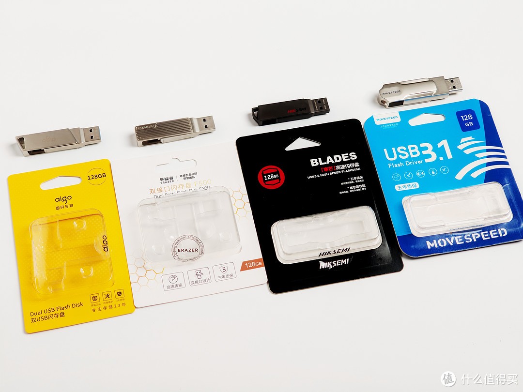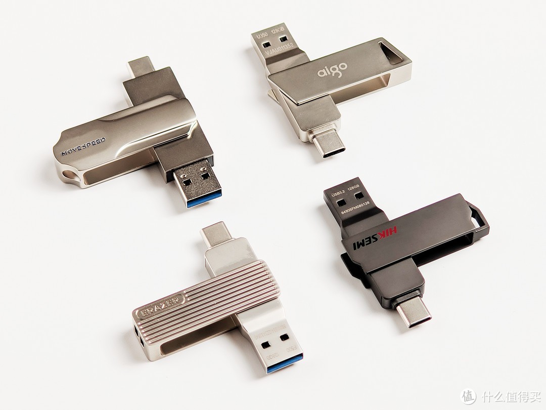 今天给大家带来四款双接口U盘分别是爱国者U350、海康威视X307C、联想异能者、移速灵动Pro,几款产品都有多种容量可选,本次全部选用128GB容量,通过实际对比大家一起看看究竟哪款更加值得买!
