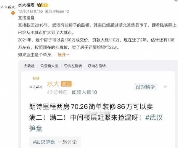 据武汉楼市专注博主@水大楼观爆料,部分武汉房价已经出现崩盘的情况。他举例称,一套70.26平方米、简装修挂86万可卖。
