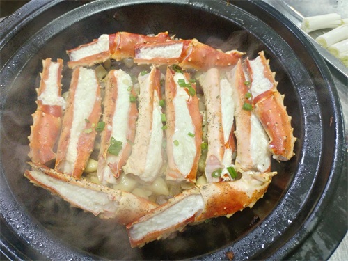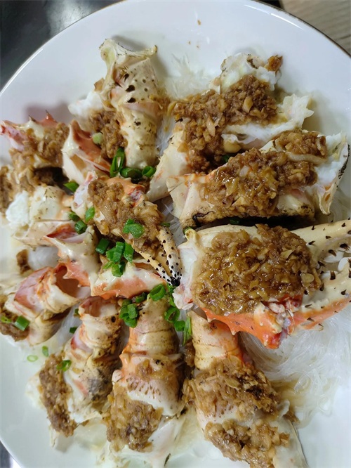第四步:蟹腿去蒸车15分钟蒸熟撒香葱末即可。