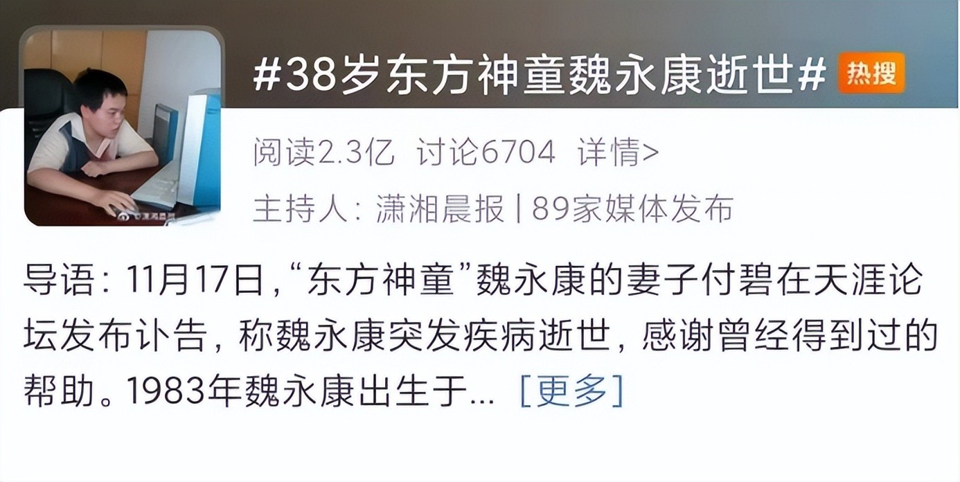 一直到2011年11月,因为工作原因,魏永康长期加班熬夜,这也导致他突发心脑血管疾病猝死了。而这个“神童”的一生,也永远停在了他38岁的这一刻,彻底的结束了。
