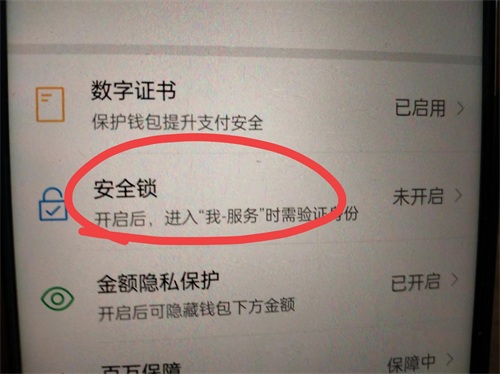 然后我们在这里输入一下支付密码就可以关闭了,那么安全锁已关闭,我们再次进入服务时直接就能够看到钱包,无需再次输入手势密码。