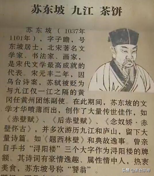 九江茶饼除了韦应物的命名外,还受到很多文化名人的赞誉,苏东坡就是其中之一。苏东坡在品尝九江茶饼后就写下了“小饼如嚼月,中有酥和饴”的赞誉诗句。