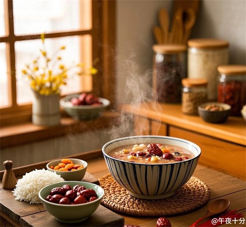 谈及腊八节美食,最具代表性的当属腊八粥。这一碗汇聚万千食材的粥品,是腊八节的灵魂所在。精心挑选的糯米、红豆、红枣、莲子、桂圆、花生、薏仁等食材,经慢火炖煮,相互交融,散发着诱人香气。糯米软糯黏滑,似是将团圆的意味牢牢锁住;红豆寓意鸿运当头,颗颗饱满,为新年注入好运期许;红枣甜蜜馥郁,仿若把红火日子熬进了粥里;莲子养心安神,给予冬日宁静祥和;桂圆滋补气血,让暖流贯穿全身;花生又名“长生果”,饱含对健康长寿的祝愿;薏仁祛湿健脾,助力身体轻盈开启新程。一家人围坐,共享这一碗腊八粥,暖胃又暖心,传递着亲情的温度,诉说着岁月的故事。