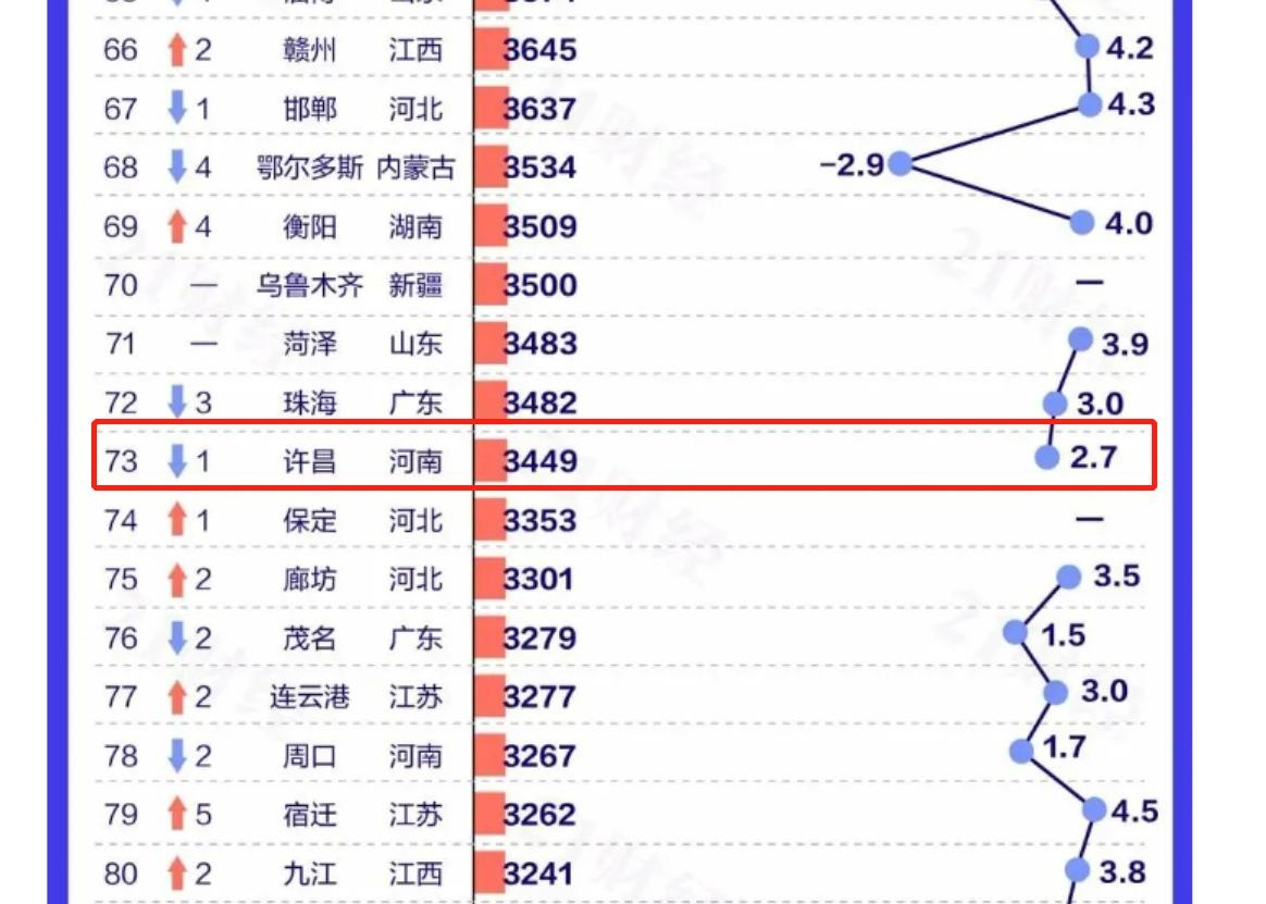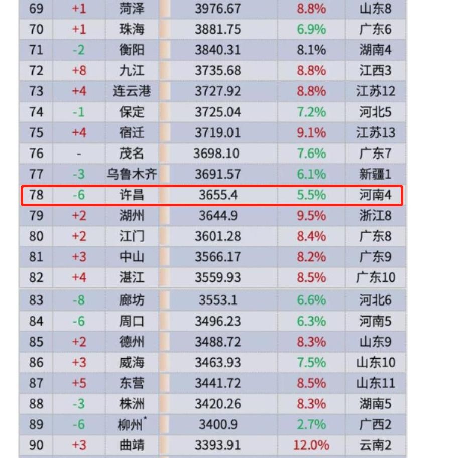 仅仅在一年之前,许昌市的经济总量还是全省的第73位,当时的许昌市也是仅次于珠海市,高于保定市、廊坊市、连云港市、宿迁市、九江市。而以上的几个城市,都已经对许昌市实现了逆袭。